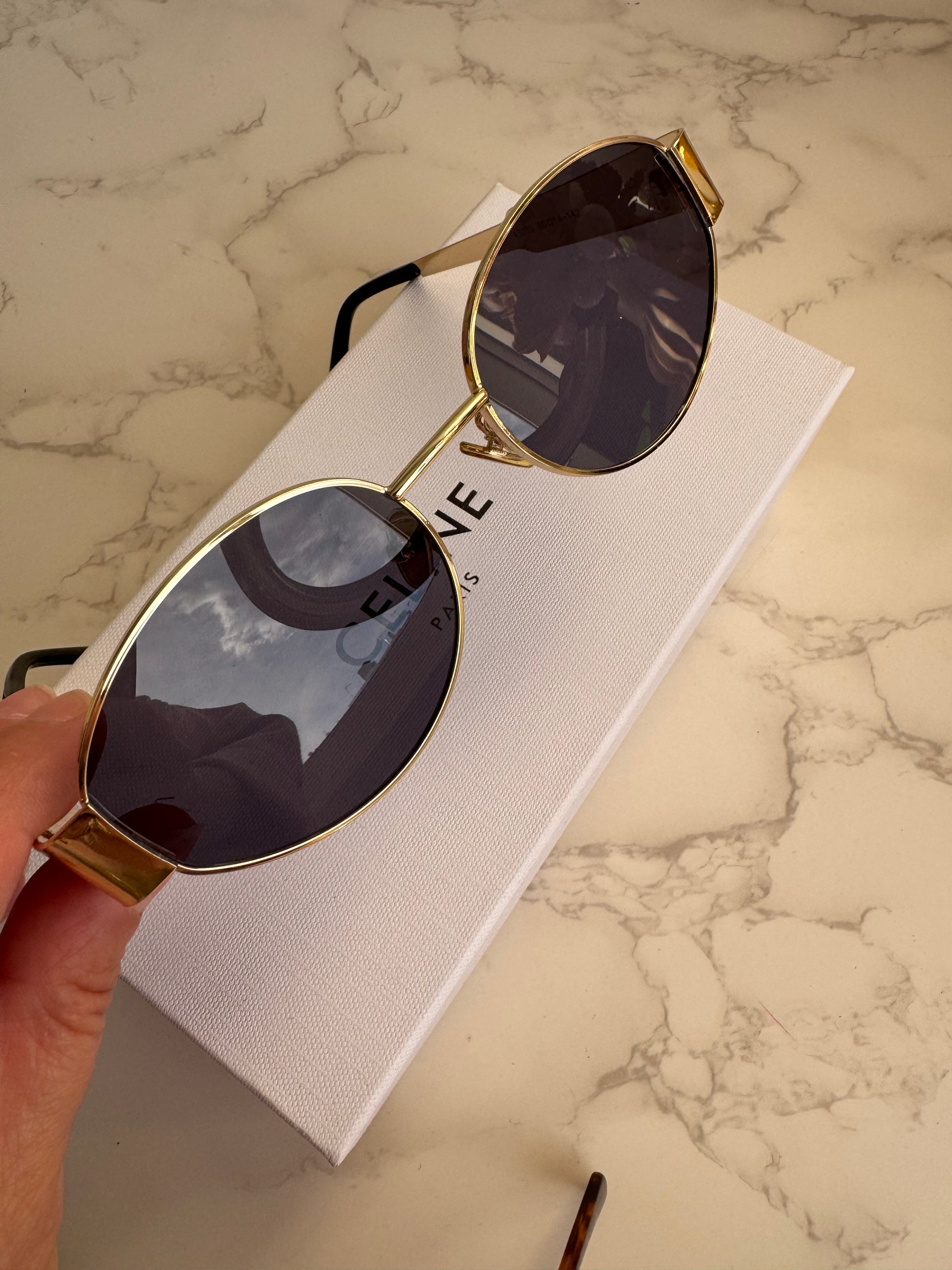 Κομψά και διαχρονικά γυαλιά ηλίου Celine με μεταλλικό σκελετό και πολυτελείς λεπτομέρειες. Ο minimal σχεδιασμός και οι φινετσάτες γραμμές προσφέρουν στυλ και κομψότητα σε κάθε εμφάνιση.
