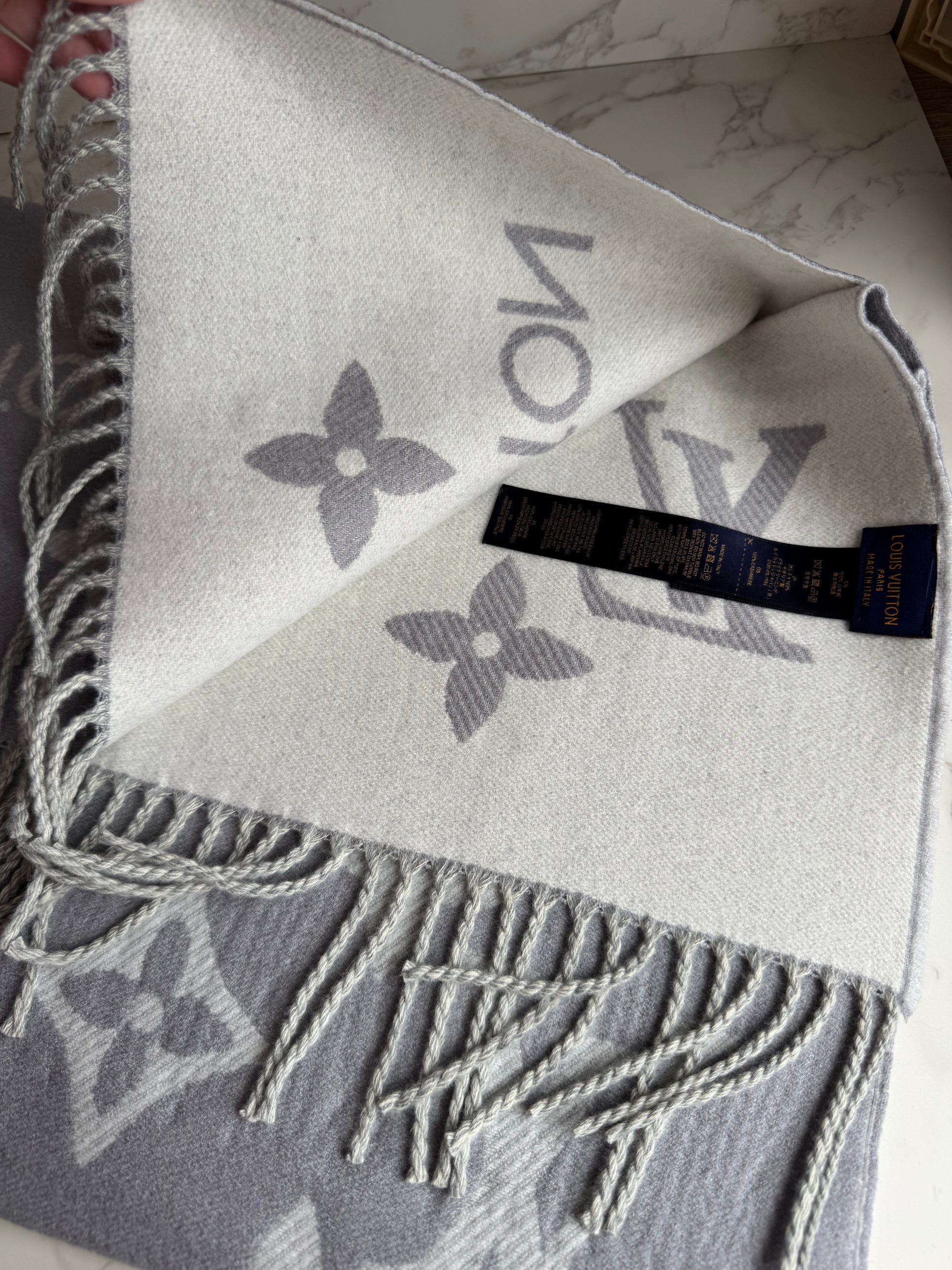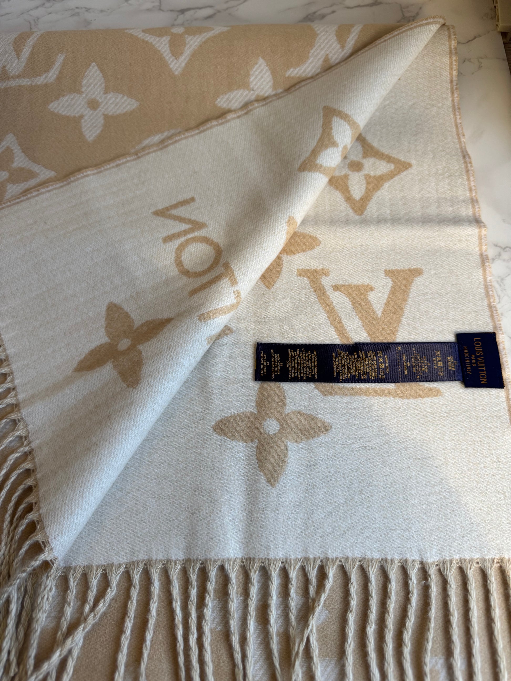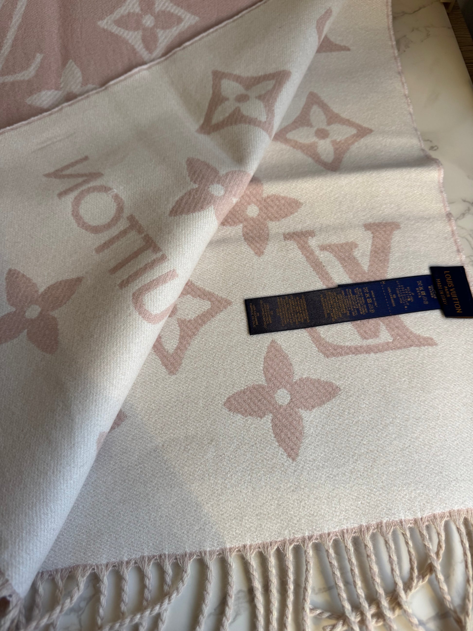 Σικάτο και απαλό κασκόλ-πασμίνα με το εμβληματικό μοτίβο LV, ιδανικό για όλες τις περιστάσεις. Διαθέτει διπλή όψη, για να συνδυάζεται εύκολα με όλα σας τα outfit.